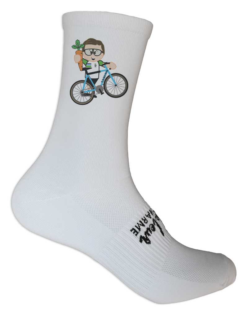 Wat is nu leuker om op je fietssok te zetten dan een illustratie van jezelf als pedaleur? Het kan in een paar simpele stappen: