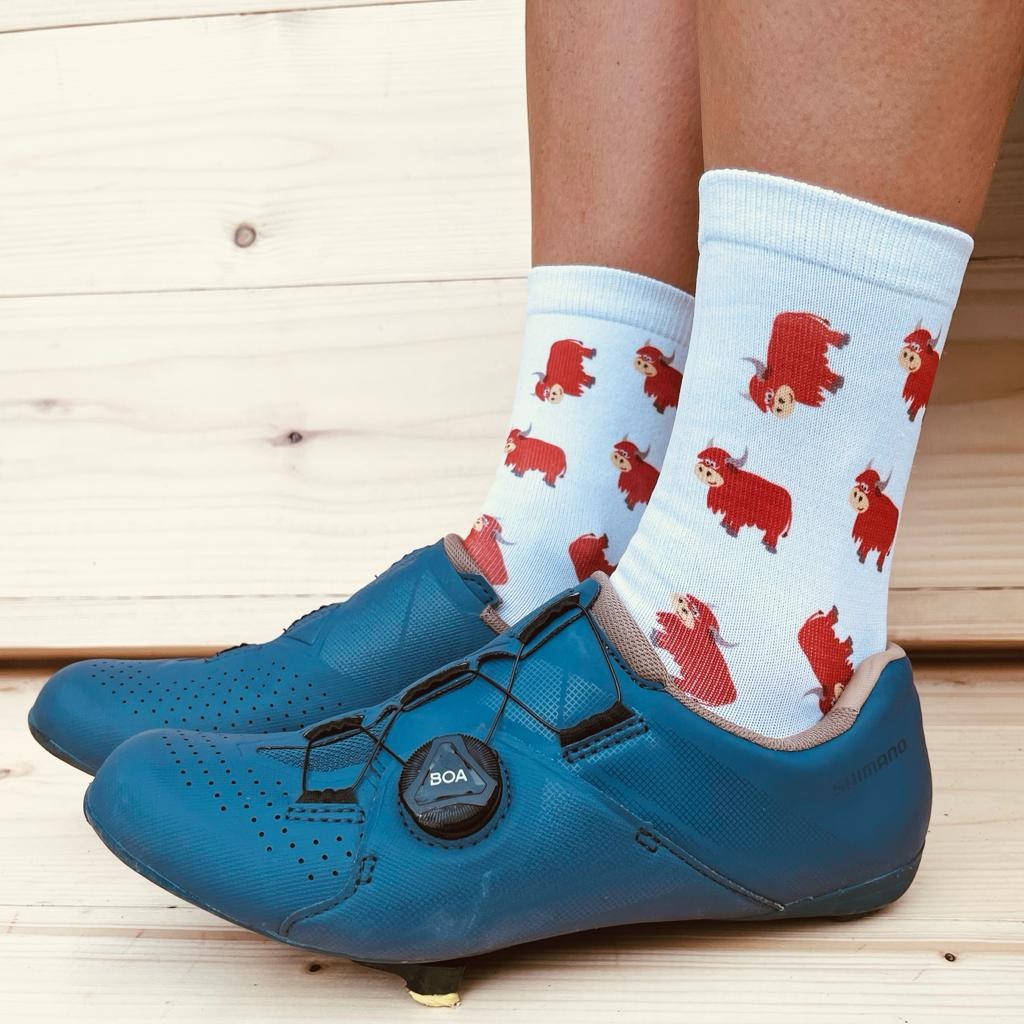 Er zijn maar weinig toffere dieren dan de Schotse Hooglander; en tijdens een rondje door de Noord-Hollandse Duinen zijn ze moeilijk te missen. Met deze Hooglander-sokken weet je zeker dat je er goed uitziet als je er een tegen het lijf fietst!